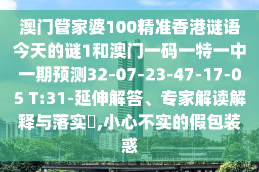 澳門管家婆100精準香港謎語今天的謎1和澳門一碼一特一中一期預(yù)測32-07-23-47-17-05 T:31-延伸解答、專家解讀解釋與落實?,小心不實的假包裝惑