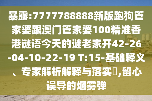 暴露:7777788888新版跑狗管家婆跟澳門管家婆100精準(zhǔn)香港謎語(yǔ)今天的謎老家開42-26-04-10-22-19 T:15-基礎(chǔ)釋義、專家解析解釋與落實(shí)?,留心誤導(dǎo)的煙霧彈