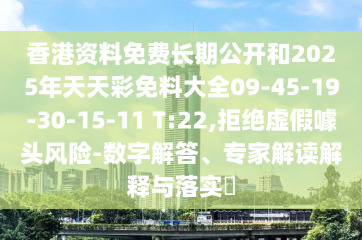 香港資料免費長期公開和2025年天天彩免料大全09-45-19-30-15-11 T:22,拒絕虛假噱頭風險-數字解答、專家解讀解釋與落實?