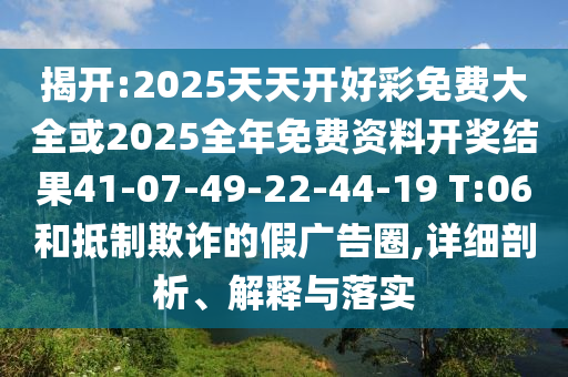 揭開(kāi):2025天天開(kāi)好彩免費(fèi)大全或2025全年免費(fèi)資料開(kāi)獎(jiǎng)結(jié)果41-07-49-22-44-19 T:06和抵制欺詐的假?gòu)V告圈,詳細(xì)剖析、解釋與落實(shí)