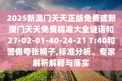 2025新澳門天天正版免費或新澳門天天免費精準(zhǔn)大全謎語和27-02-01-40-24-21 T:40:標(biāo)準(zhǔn)分析、專家解析解釋與落實