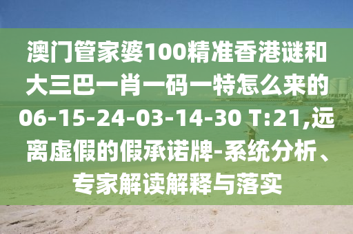 澳門管家婆100精準香港謎和大三巴一肖一碼一特怎么來的06-15-24-03-14-30 T:21,遠離虛假的假承諾牌-系統(tǒng)分析、專家解讀解釋與落實