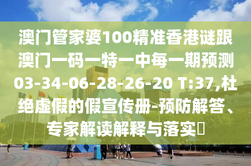 澳門管家婆100精準香港謎跟澳門一碼一特一中每一期預測03-34-06-28-26-20 T:37的預防解答、專家解讀解釋與落實?