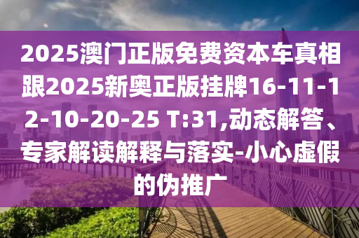 2025澳門正版免費資本車真相跟2025新奧正版掛牌16-11-12-10-20-25 T:31,動態(tài)解答、專家解讀解釋與落實-小心虛假的偽推廣
