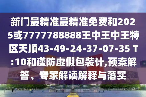 新門最精準(zhǔn)最精準(zhǔn)免費(fèi)和2025或7777788888王中王中王特區(qū)天順43-49-24-37-07-35 T:10的預(yù)案解答、專家解讀解釋與落實(shí)