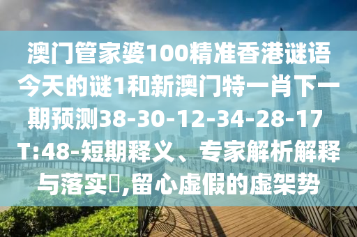 澳門管家婆100精準(zhǔn)香港謎語今天的謎1和新澳門特一肖下一期預(yù)測38-30-12-34-28-17 T:48-短期釋義、專家解析解釋與落實?,留心虛假的虛架勢