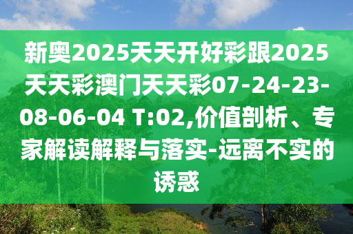 新奧2025天天開好彩跟2025天天彩澳門天天彩07-24-23-08-06-04 T:02的價(jià)值剖析、專家解讀解釋與落實(shí)