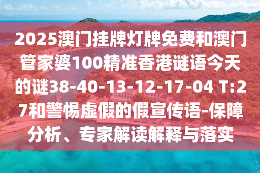 2025澳門掛牌燈牌免費和澳門管家婆100精準香港謎語今天的謎38-40-13-12-17-04 T:27的保障分析、專家解讀解釋與落實