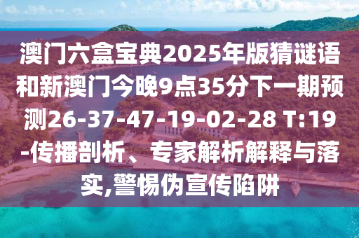 澳門六盒寶典2025年版猜謎語和新澳門今晚9點(diǎn)35分下一期預(yù)測(cè)26-37-47-19-02-28 T:19-傳播剖析、專家解析解釋與落實(shí),警惕偽宣傳陷阱