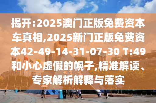2025澳門正版免費資本車真相,2025新門正版免費資本42-49-14-31-07-30 T:49:精準解讀、專家解析解釋與落實