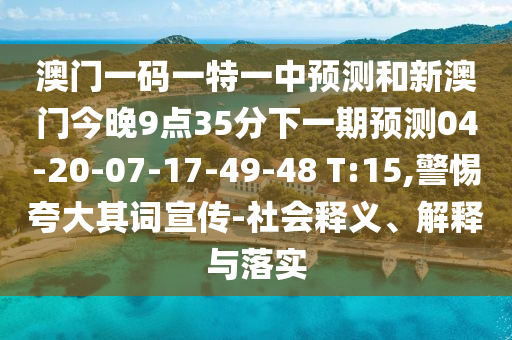 澳門一碼一特一中預(yù)測和新澳門今晚9點(diǎn)35分下一期預(yù)測04-20-07-17-49-48 T:15,警惕夸大其詞宣傳-社會(huì)釋義、解釋與落實(shí)