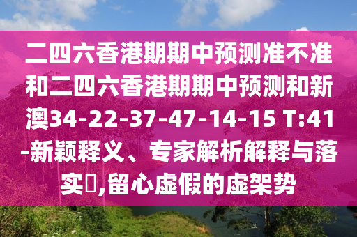 關(guān)于二四六香港期期中預(yù)測(cè)準(zhǔn)不準(zhǔn)和新澳號(hào)碼預(yù)測(cè)的相關(guān)解析與提醒