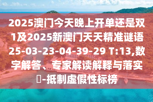 2025澳門(mén)今天晚上開(kāi)單還是雙1及2025新澳門(mén)天天精準(zhǔn)謎語(yǔ)25-03-23-04-39-29 T:13的數(shù)字解答、專家解讀解釋與落實(shí)?
