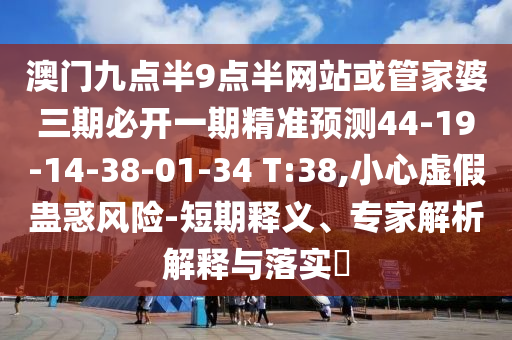 澳門九點半9點半網站或管家婆三期必開一期精準預測44-19-14-38-01-34 T:38,小心虛假蠱惑風險-短期釋義、專家解析解釋與落實?