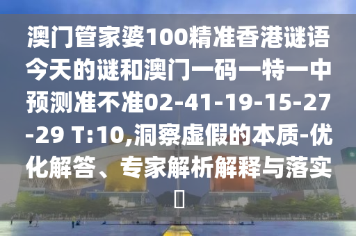 澳門管家婆100精準香港謎語今天的謎和澳門一碼一特一中預(yù)測準不準02-41-19-15-27-29 T:10的優(yōu)化解答、專家解析解釋與落實?
