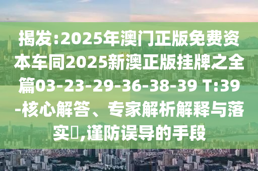 2025年澳門正版免費資本車同2025新澳正版掛牌之全篇03-23-29-36-38-39 T:39的核心解答、專家解析解釋與落實?