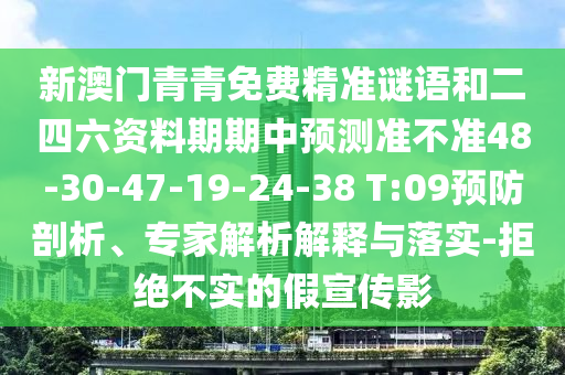 新澳門青青免費精準(zhǔn)謎語和二四六資料期期中預(yù)測準(zhǔn)不準(zhǔn)48-30-47-19-24-38 T:09:預(yù)防剖析、專家解析解釋與落實