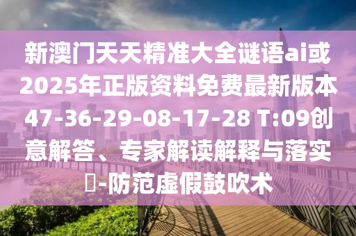 新澳門天天精準(zhǔn)大全謎語ai或2025年正版資料免費最新版本47-36-29-08-17-28 T:09創(chuàng)意解答、專家解讀解釋與落實?-防范虛假鼓吹術(shù)