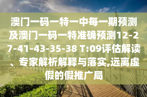 澳門一碼一特一中每一期預(yù)測(cè)及澳門一碼一特準(zhǔn)確預(yù)測(cè)12-27-41-43-35-38 T:09的評(píng)估解讀、專家解析解釋與落實(shí)