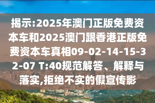 揭示:2025年澳門正版免費資本車和2025澳門跟香港正版免費資本車真相09-02-14-15-32-07 T:40規(guī)范解答、解釋與落實,拒絕不實的假宣傳影