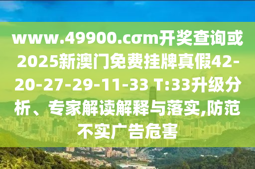 www.49900.cσm開獎查詢或2025新澳門免費掛牌真假42-20-27-29-11-33 T:33的升級分析、專家解讀解釋與落實