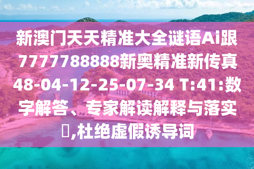 新澳門天天精準大全謎語Ai跟7777788888新奧精準新傳真48-04-12-25-07-34 T:41的數(shù)字解答、專家解讀解釋與落實?