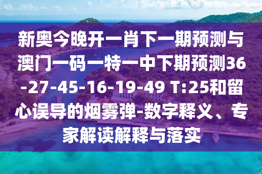 新奧今晚開一肖下一期預(yù)測與澳門一碼一特一中下期預(yù)測36-27-45-16-19-49 T:25和留心誤導(dǎo)的煙霧彈-數(shù)字釋義、專家解讀解釋與落實(shí)