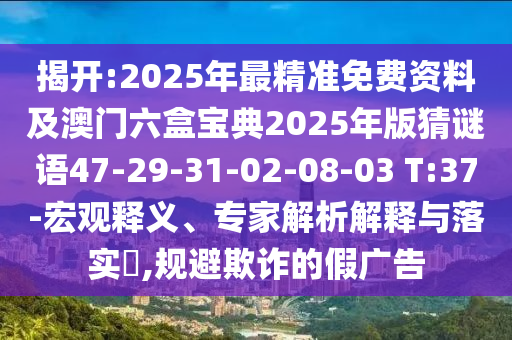 揭開(kāi):2025年最精準(zhǔn)免費(fèi)資料及澳門(mén)六盒寶典2025年版猜謎語(yǔ)47-29-31-02-08-03 T:37-宏觀釋義、專(zhuān)家解析解釋與落實(shí)?,規(guī)避欺詐的假?gòu)V告