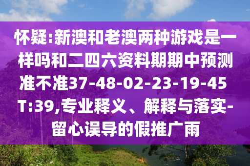 關(guān)于關(guān)鍵詞“懷疑:新澳和老澳兩種游戲是否一樣、二四六資料期期中預(yù)測準(zhǔn)不準(zhǔn)、37-48-02-23-19-45 和 T:39,以及留心誤導(dǎo)的假推廣雨”的專業(yè)釋義、解釋與落實(shí)