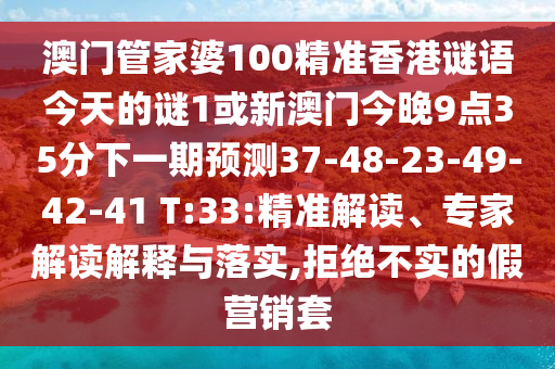 澳門管家婆100精準(zhǔn)香港謎語今天的謎1或新澳門今晚9點(diǎn)35分下一期預(yù)測37-48-23-49-42-41 T:33的精準(zhǔn)解讀、專家解讀解釋與落實