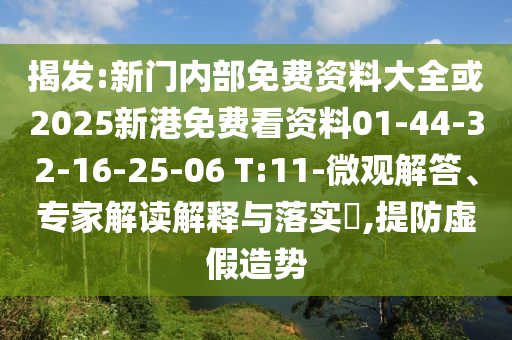 揭發(fā):新門內(nèi)部免費(fèi)資料大全或2025新港免費(fèi)看資料01-44-32-16-25-06 T:11-微觀解答、專家解讀解釋與落實(shí)?,提防虛假造勢