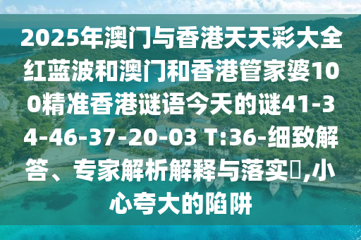 2025年澳門與香港天天彩大全紅藍(lán)波和澳門和香港管家婆100精準(zhǔn)香港謎語今天的謎41-34-46-37-20-03 T:36的細(xì)致解答、專家解析解釋與落實(shí)?