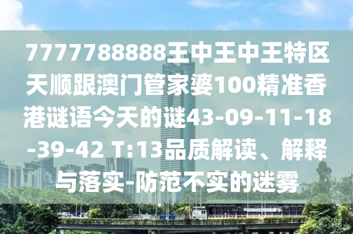 7777788888王中王中王特區(qū)天順跟澳門管家婆100精準(zhǔn)香港謎語今天的謎43-09-11-18-39-42 T:13的品質(zhì)解讀、解釋與落實(shí)