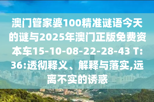 澳門管家婆100精準(zhǔn)謎語今天的謎與2025年澳門正版免費(fèi)資本車15-10-08-22-28-43 T:36:透徹釋義、解釋與落實(shí),遠(yuǎn)離不實(shí)的誘惑