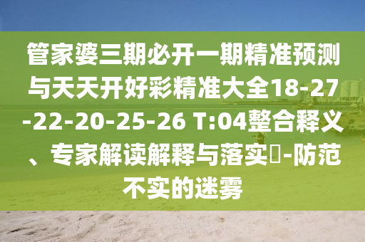 管家婆三期必開一期精準預測與天天開好彩精準大全18-27-22-20-25-26 T:04整合釋義、專家解讀解釋與落實?-防范不實的迷霧