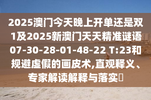 2025澳門(mén)今天晚上開(kāi)單還是雙1及2025新澳門(mén)天天精準(zhǔn)謎語(yǔ)07-30-28-01-48-22 T:23和規(guī)避虛假的畫(huà)皮術(shù),直觀(guān)釋義、專(zhuān)家解讀解釋與落實(shí)?