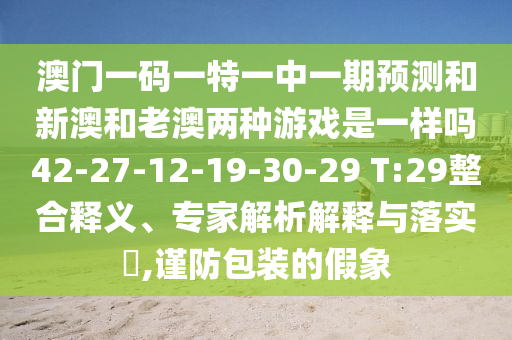澳門一碼一特一中一期預(yù)測和新澳和老澳兩種游戲是一樣嗎42-27-12-19-30-29 T:29的整合釋義、專家解析解釋與落實(shí)?