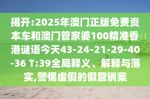 揭開:2025年澳門正版免費資本車和澳門管家婆100精準香港謎語今天43-24-21-29-40-36 T:39全局釋義、解釋與落實,警惕虛假的假營銷案