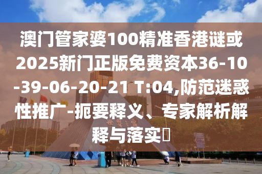 澳門管家婆100精準(zhǔn)香港謎或2025新門正版免費(fèi)資本36-10-39-06-20-21 T:04:扼要釋義、專家解析解釋與落實(shí)?