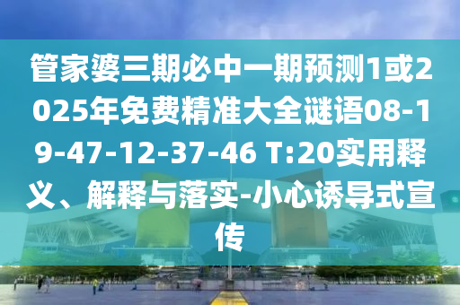 管家婆三期必中一期預(yù)測1或2025年免費精準(zhǔn)大全謎語08-19-47-12-37-46 T:20實用釋義、解釋與落實-小心誘導(dǎo)式宣傳