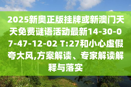 2025新奧正版掛牌或新澳門天天免費謎語活動最新14-30-07-47-12-02 T:27:方案解讀、專家解讀解釋與落實