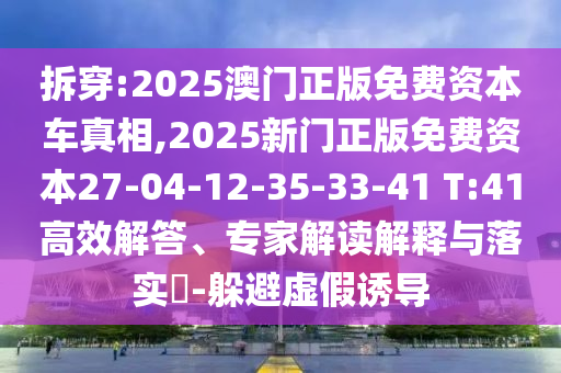 2025澳門正版免費資本車真相,2025新門正版免費資本27-04-12-35-33-41 T:41的高效解答、專家解讀解釋與落實?