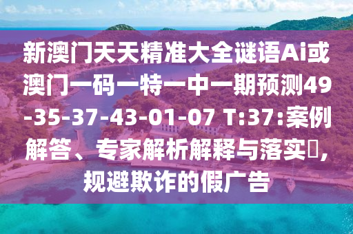 新澳門天天精準(zhǔn)大全謎語Ai或澳門一碼一特一中一期預(yù)測49-35-37-43-01-07 T:37的案例解答、專家解析解釋與落實?