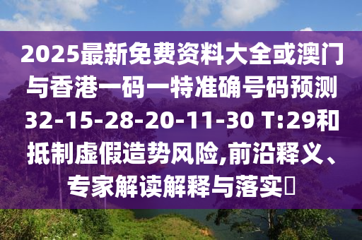 2025最新免費資料大全或澳門與香港一碼一特準確號碼預測32-15-28-20-11-30 T:29的前沿釋義、專家解讀解釋與落實?