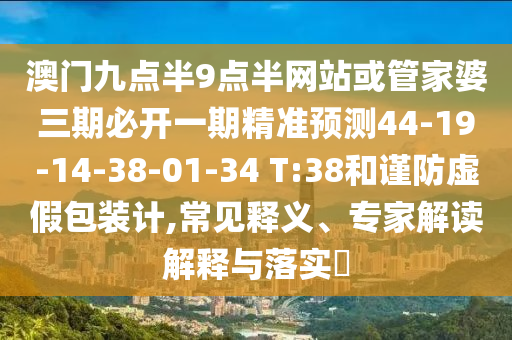 澳門九點(diǎn)半9點(diǎn)半網(wǎng)站或管家婆三期必開一期精準(zhǔn)預(yù)測(cè)44-19-14-38-01-34 T:38和謹(jǐn)防虛假包裝計(jì),常見(jiàn)釋義、專家解讀解釋與落實(shí)?