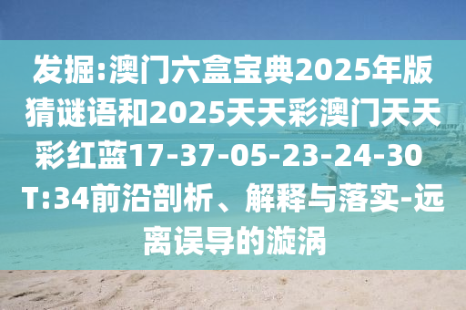 澳門六盒寶典2025年版猜謎語和2025天天彩澳門天天彩紅藍17-37-05-23-24-30 T:34:前沿剖析、解釋與落實