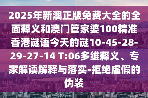 2025年新澳正版免費(fèi)大全的全面釋義和澳門管家婆100精準(zhǔn)香港謎語今天的謎10-45-28-29-27-14 T:06:多維釋義、專家解讀解釋與落實(shí)