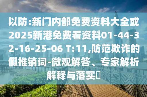 以防:新門內(nèi)部免費資料大全或2025新港免費看資料01-44-32-16-25-06 T:11,防范欺詐的假推銷詞-微觀解答、專家解析解釋與落實?