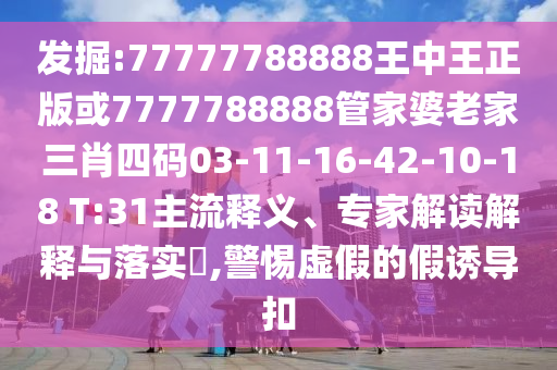 發(fā)掘:77777788888王中王正版或7777788888管家婆老家三肖四碼03-11-16-42-10-18 T:31主流釋義、專家解讀解釋與落實?,警惕虛假的假誘導(dǎo)扣