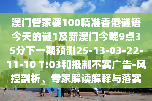 澳門管家婆100精準香港謎語今天的謎1及新澳門今晚9點35分下一期預測25-13-03-22-11-10 T:03和抵制不實廣告-風控剖析、專家解讀解釋與落實